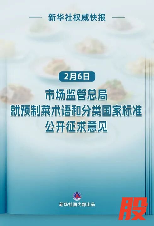2月6日,市场监管总局就预制菜术语和分类国家标准向社会公开征求意见。